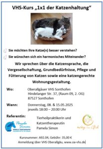 Katzenkurs an der VHS Füssen „Spielfreude für Katzen & Katzenhalter“ am 16.10.2025 17:00 – 19:00 Uhr